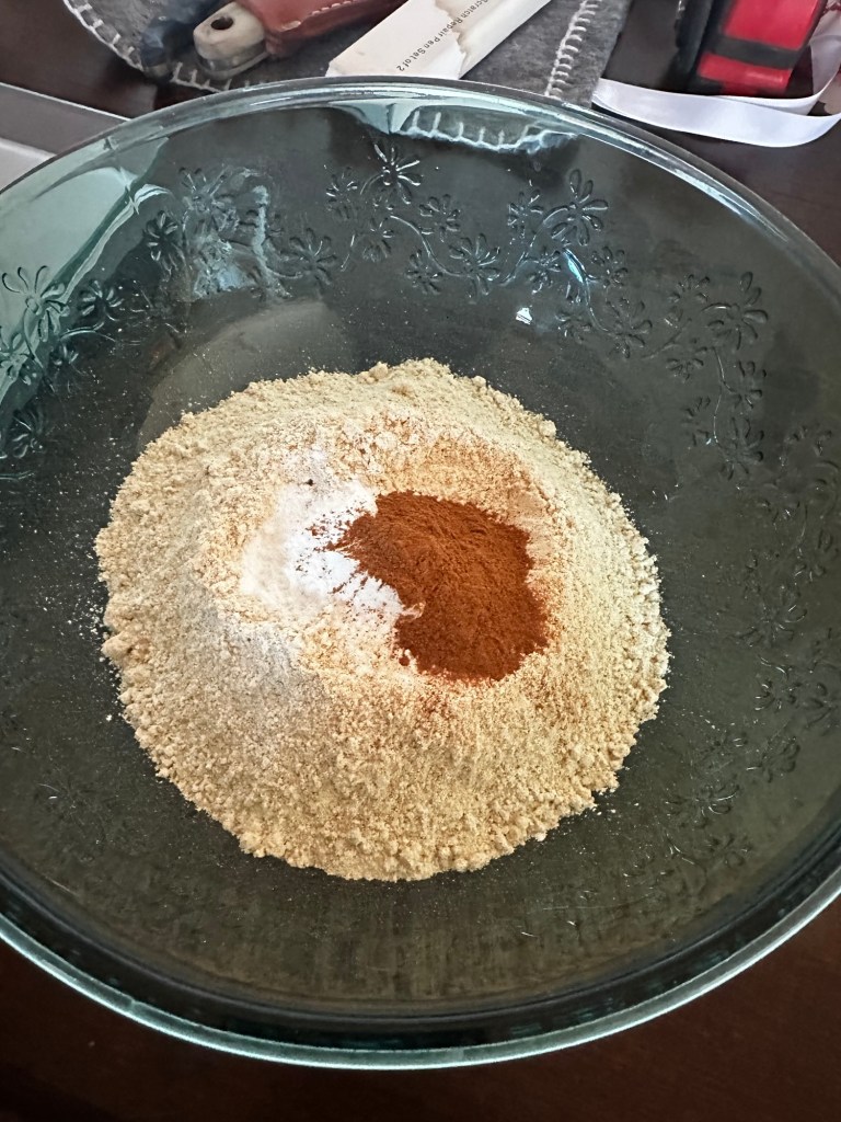 I use a scale to measure out my flour. Weighing flour ensures accuracy, especially since soft wheat holds lot of air after milling. Pictured here is the total measurement needed of flour. 120 grams soft white wheat, and 120 grams of einkorn.