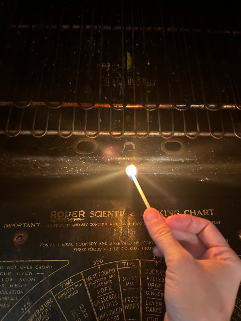 Next, light your oven. I’m blessed to have an antique gas oven from 1942! I love my old oven.