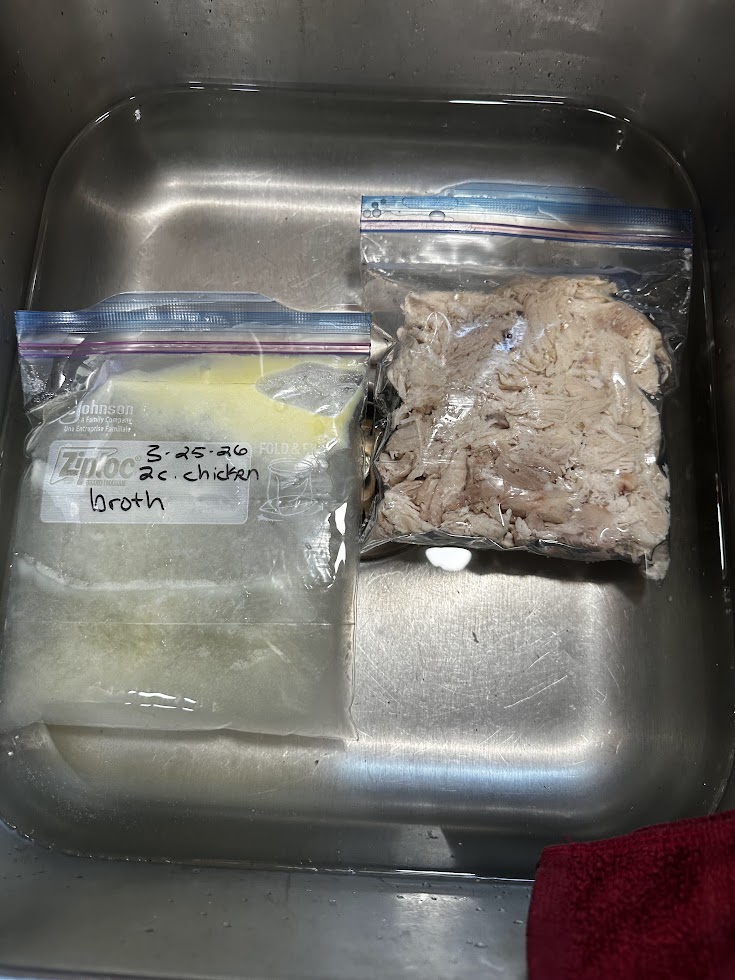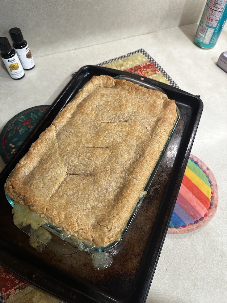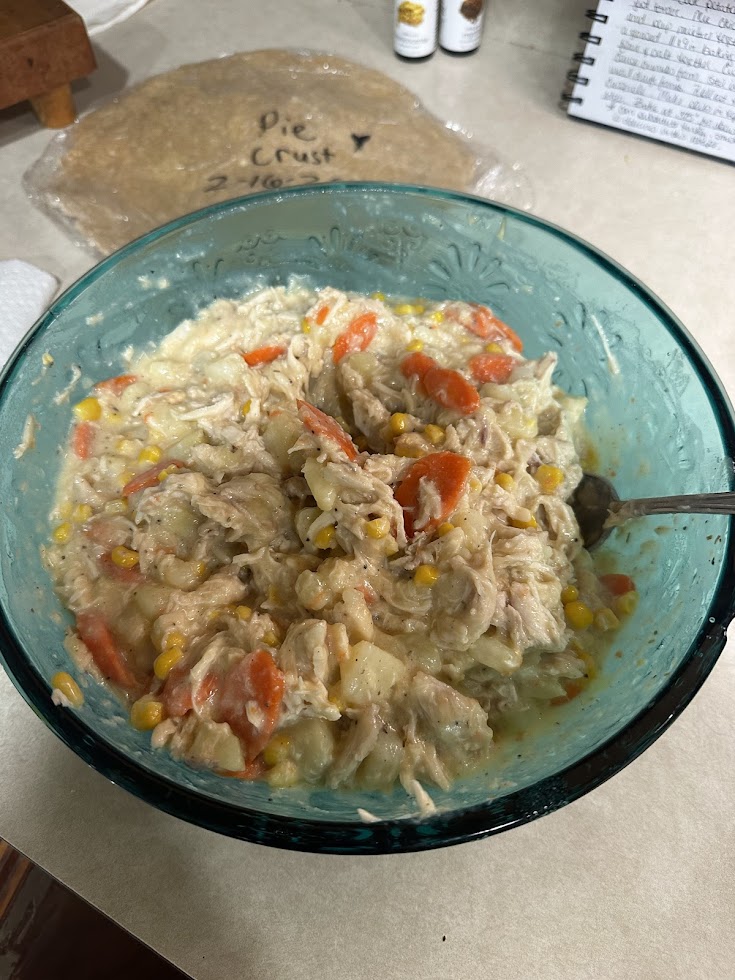 This recipe becomes a snap to make if you have shredded chicken, broth and your pie crust ready to pull out of the freezer.