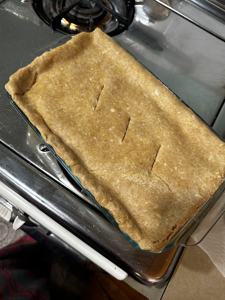 This pie crust is not the pie crust from Momma’s recipe. It is a freshly milled pie crust that I pulled out the freezer. The pie crust in Momma’s recipe is a snap to make and fool-proof! It’s also my great grandma’s recipe and my go to when using regular flour. I just don’t favor Momma’s pie crust recipe with fresh milled flour. I will link the recipe I used for my freshly milled pie crust in a reference at the end of this post. Finding a freshly milled pie crust that I liked has definitely taken some trial and errors, but I finally found one!